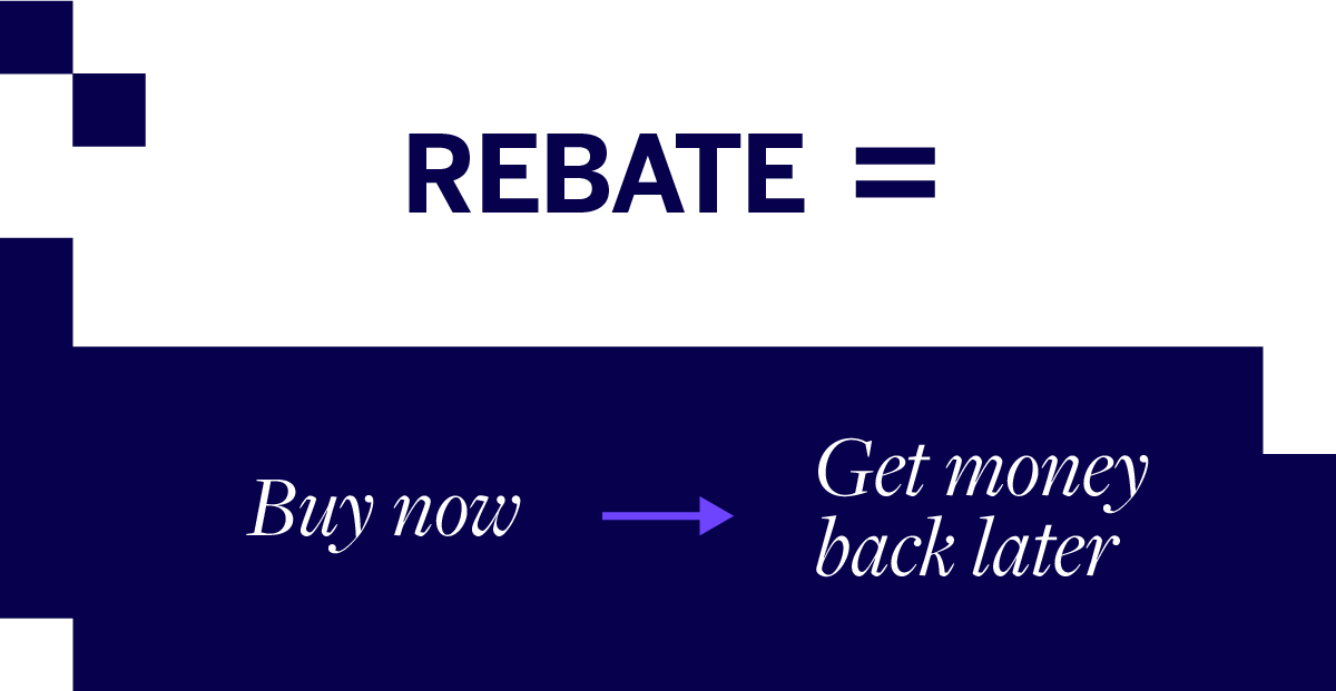A rebate is a sales promotion where you get money back after you buy something. It’s like a refund, but you get it just for making the purchase, not for returning anything.